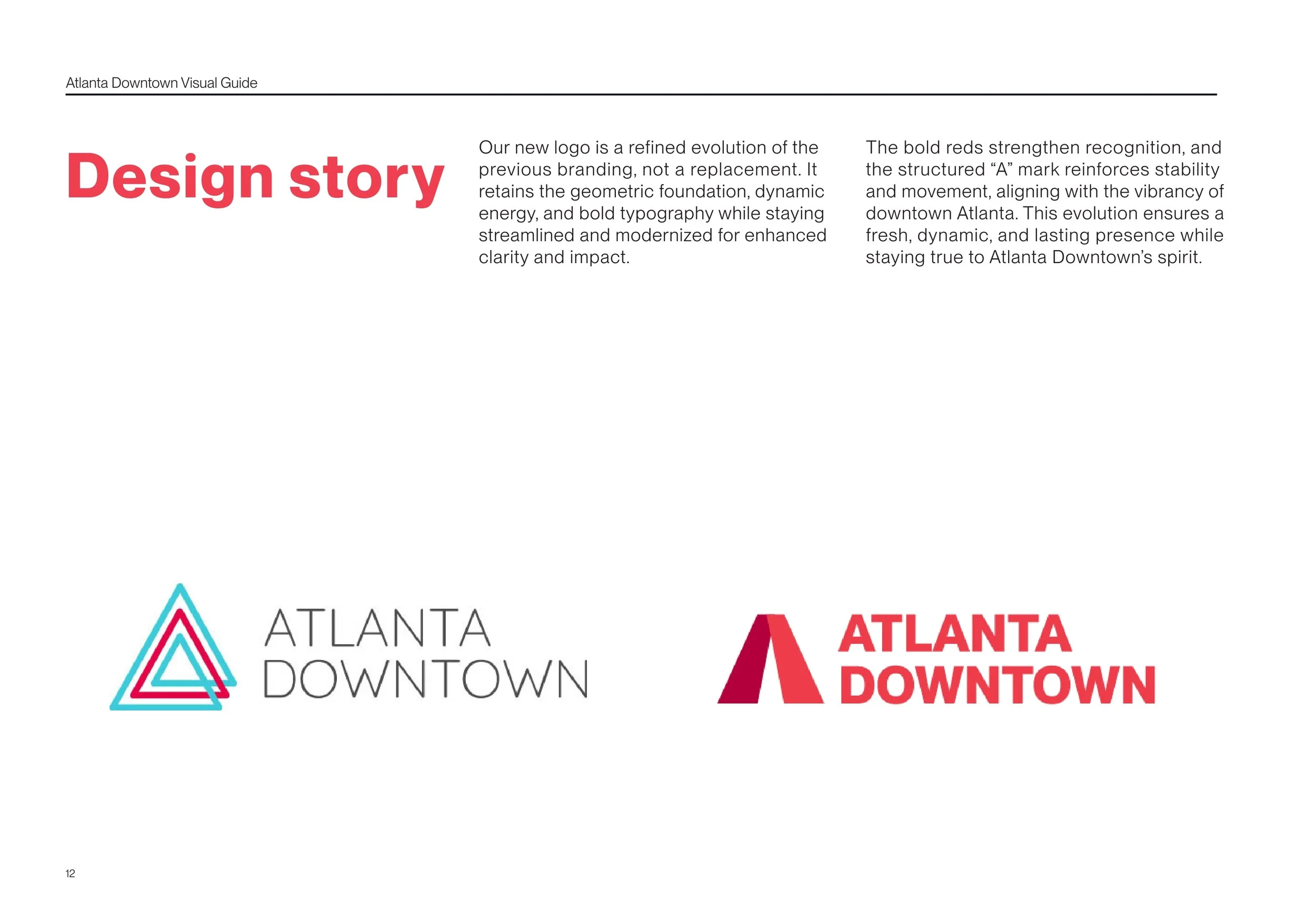 The bold reds strengthen recognition, and the structured “A” mark reinforces stability and movement, aligning with the vibrancy of downtown Atlanta. This evolution ensures a fresh, dynamic, and lasting presence while staying true to Atlanta Downtown’s spirit.